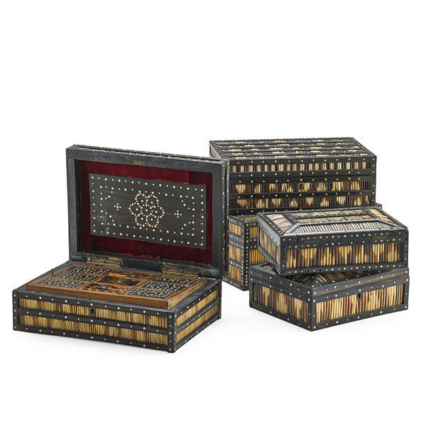 VTG Box Assortment, Marble, Leather, Wood, 6pc LOTFeb 26, 2026Korean Lacquer MOP Shell Inlay Boxes & Tray 3p LOTFeb 26, 2026(5) JAPANESE BLACK LACQUER PAINTED TABLE BOXES4 days LeftSIX ASSORTED ANTIQUE WOODEN BOXESMar 07, 2026(4) COLLECTION OF CARVED WOOD, INLAID & LEATHER-CLAD TABLE BOXES4 days LeftFIVE PIECES OF 19TH C. ASIAN EXPORT PIECES.4 days LeftTHREE VICTORIAN TUNBRIDGE WARE SEWING BOXES.2 days LeftThree Victorian Tunbridge Ware Boxes4 days Left19TH-CENTURY KASHMIR INLAID DRESSER/JEWELRY CASKET6 days LeftFour Paint Decorated Black Toleware BoxesFeb 26, 2026American Folk Art Wood Boxes, 19th C., 2Mar 26, 202619th Century Tea Caddy & Other BoxesMar 07, 2026FIVE RUSSIAN BLACK LACQUER BOXES.4 days LeftThree Antique Toleware Storage Boxes2 days Left4 wooden engraved ,inlaid and dove tail boxesMar 09, 2026FOUR CARVED WOODEN BOXES 19th Century Lengths from 7.5" to 20".1 day Left