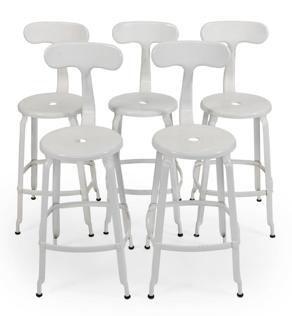 SoldSet 10 BLU DOT Metal Bar Stools. White Enameled Finish on Iron Frames. Marked.Set 10 BLU DOT Metal Bar Stools. White Enameled Finish on Iron Frames. Marked. Dimensions: H: 40.5 inches: W: 18.5 inches: D: 20.5 inches - Seat Height: 31.5 inches ---See Sold Price