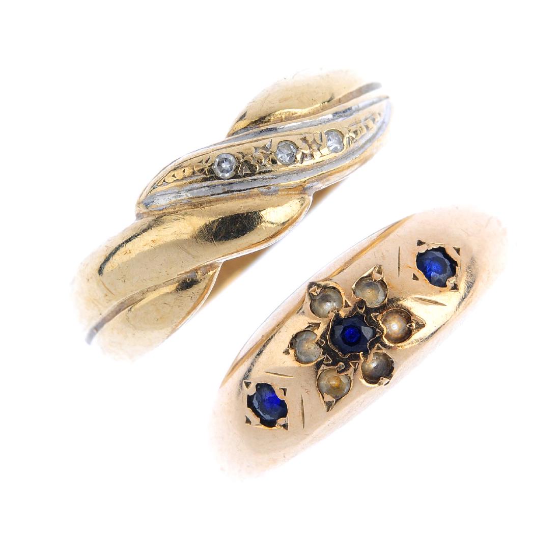 Five rings. To include a 9ct gold diamond crossover