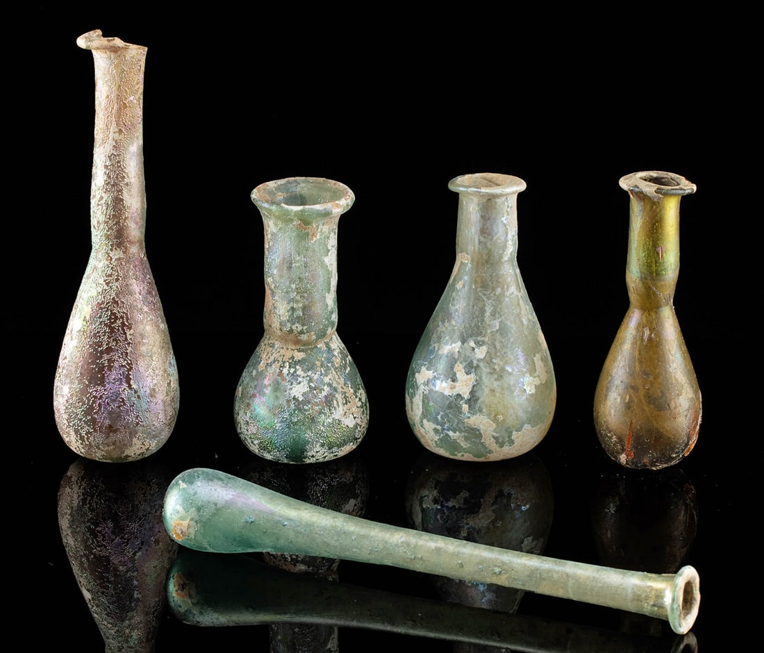 Five Roman Glass Unguentaria