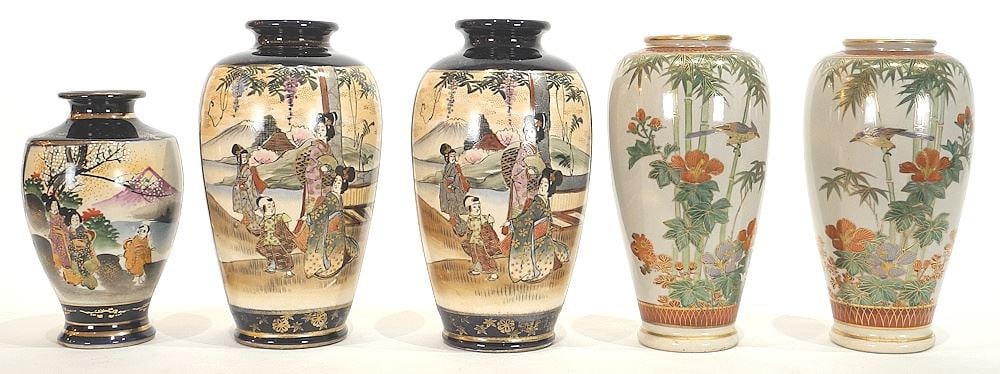 Five Satsuma Vases, 5 3/4 - 7 3/8" h.