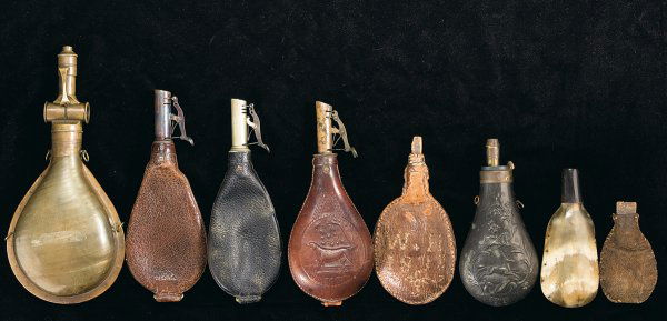 Five Shot Pouches And Three Powder Flasks