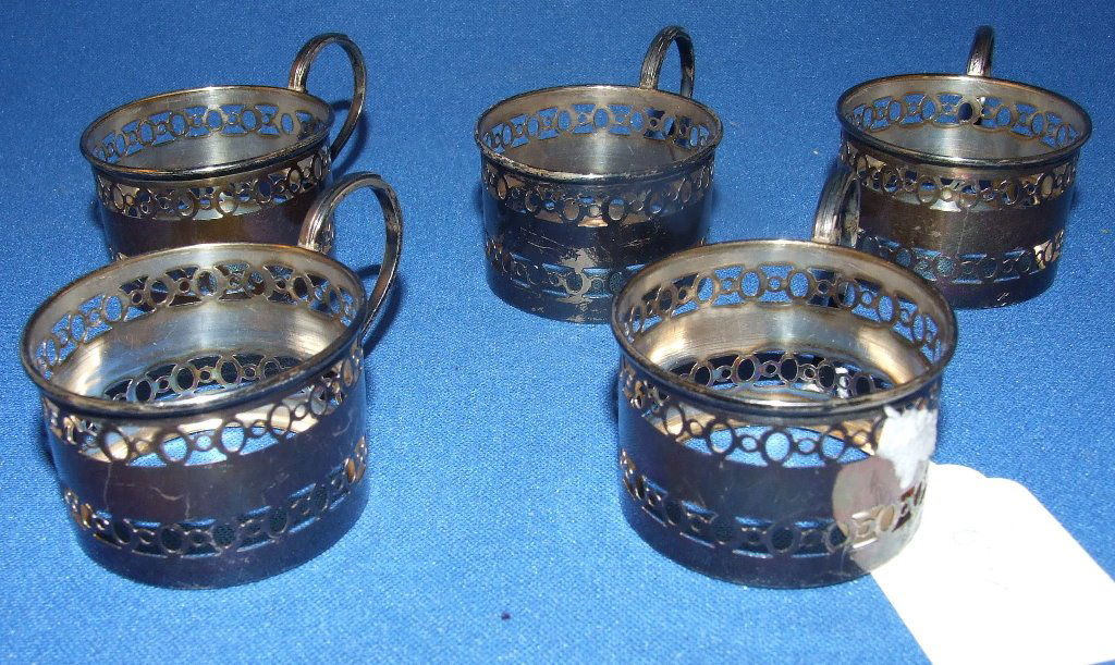 Five silver cup holders, Birmingham 1924, and assorted