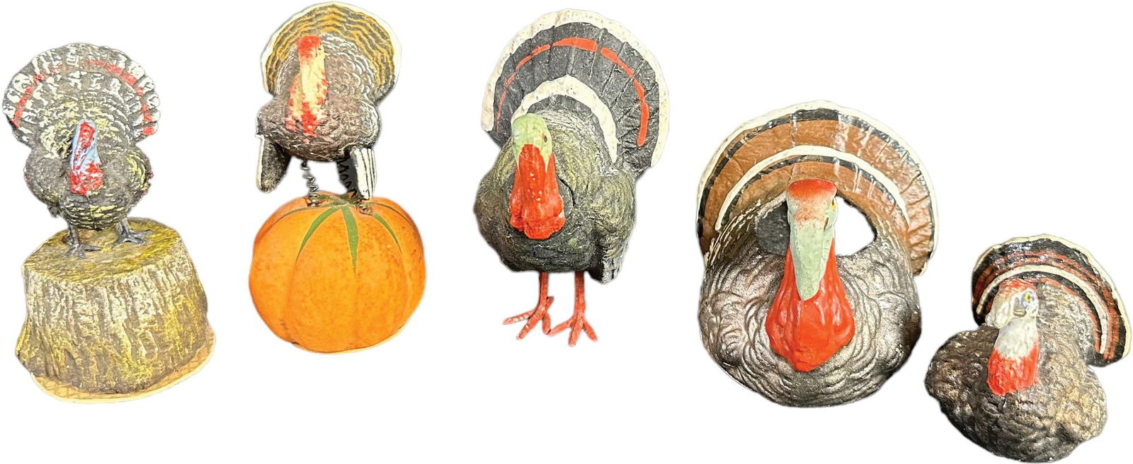 FIVE SMALL GERMAN TURKEY CANDY CONTAINERS