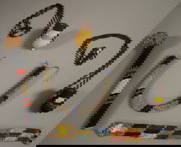 Five South African Items, three beaded items, a st