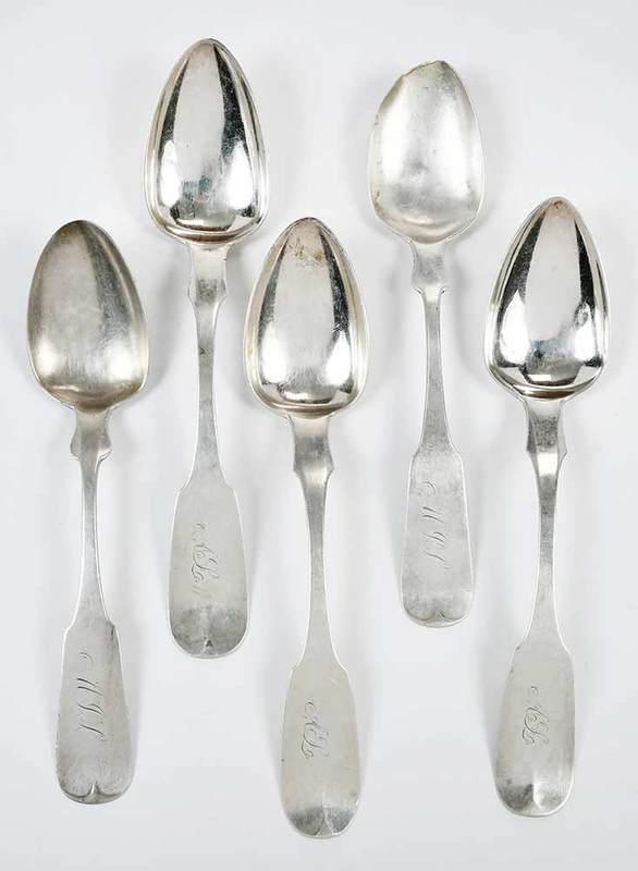 11-piece Lot3 days LeftLot of (10) American Coin Silver SpoonsApr 24, 2026(6) TIFFANY & CO. 'ANTIQUE IVY' STERLING SILVER PLACE SPOONSMar 29, 20265 PIECES ENGLISH FLATWARE5 days Left4 Vintage Silverplated Morning Star Soup & Serving SpoonsJul 10, 202519th C American Coin Silver Serving Spoons (14pc)Mar 28, 2026Set of Six Hyde and Goodrich Coin Silver Tablespoons, New Orleans, mid 19th c., Total App. Wt.-Mar 27, 2026Grouping Of 19th C. American Coin Silver Spoons, Jeffrey R. Brackett, Fenno & HaleMar 28, 2026SET OF FOUR AMERICAN COIN SILVER REGATTA SPOONS Mid- to Late 19th Century Approx. 7.0 troy oz.Mar 25, 2026Set Of Four Caleb Warner American Coin Silver Fiddleback Teaspoons, 19th C.Mar 28, 20267 Coin Silver Spoons, Connecticut5 days LeftFour early to mid-19th century German silver spoonsSix late 19th century German 750 standard silver tablespoonsEight Vintage Rogers Bros First Love Spoons6 days Left8 Vintage Rogers Bros First Love Soup Spoons9 hrs LeftSet of 6 H. Meyen & Co. - Berlin 800 Silver Spoons c19006 days Left