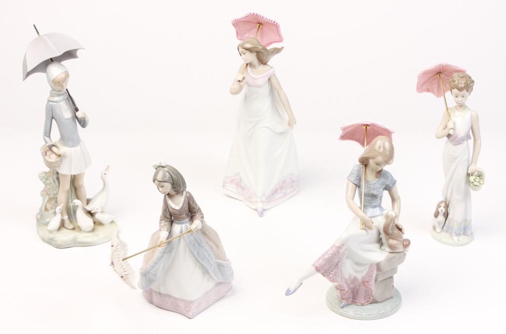 FIVE SPANISH LLADRO FIGURINES.
