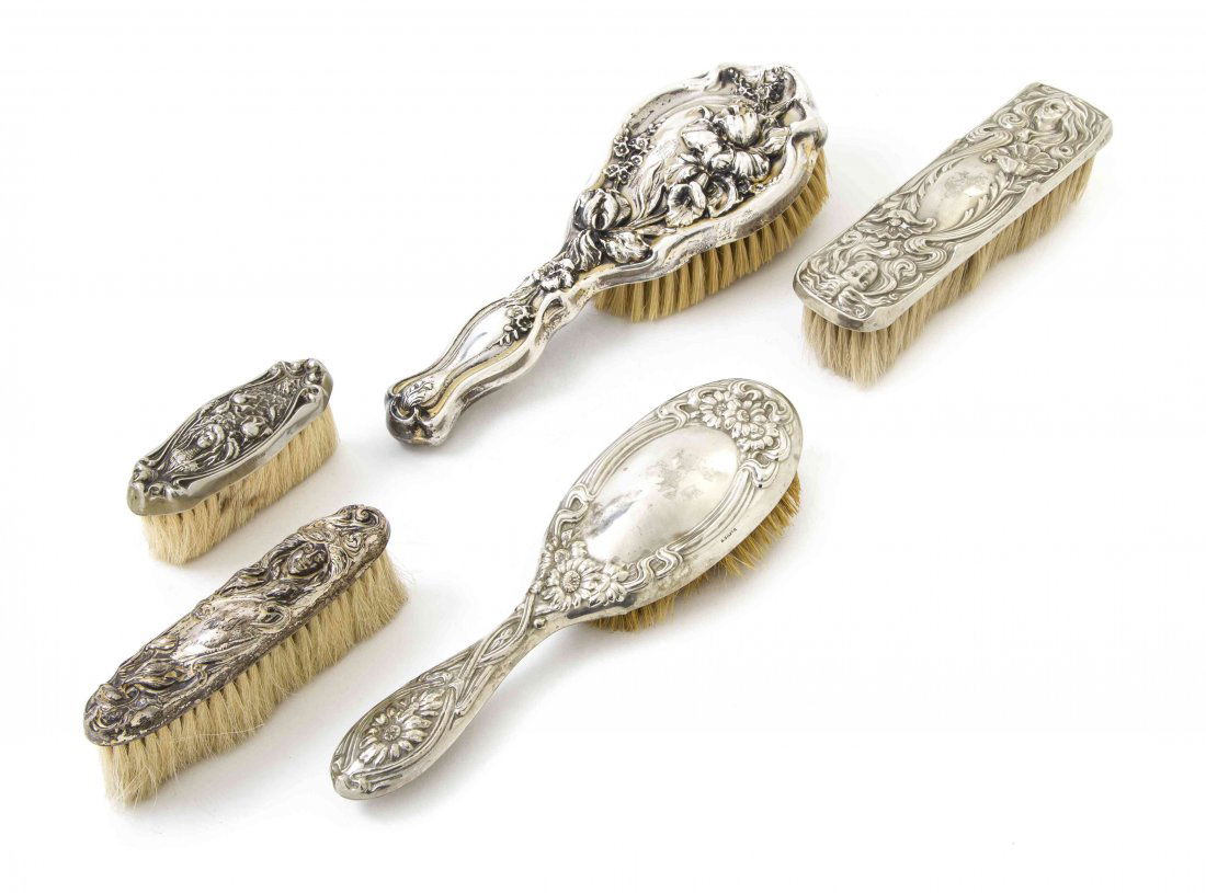 Five Sterling Silver and Silverplate Mounted Brushes, L