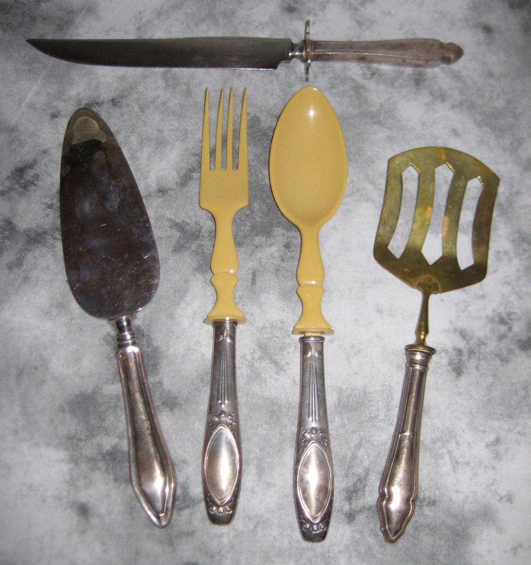 Five sterling silver handle serving pieces.