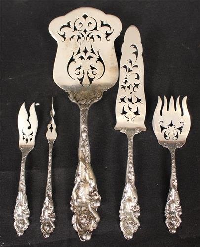 Five sterling silver serving pieces