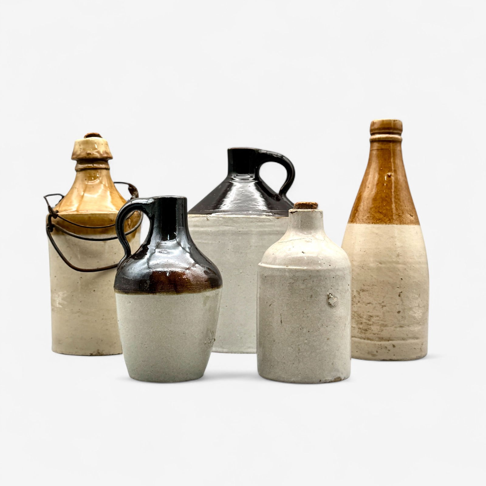 Five Stoneware Small Bottles and Jugs