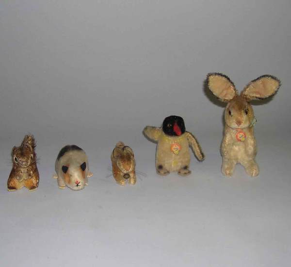 Five stuffed Steiff animals, , Small squirrel, ha