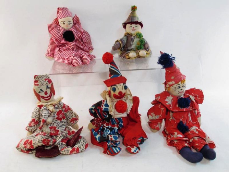 FIVE VINTAGE CLOWN/JESTER PUPPETS/DOLLS