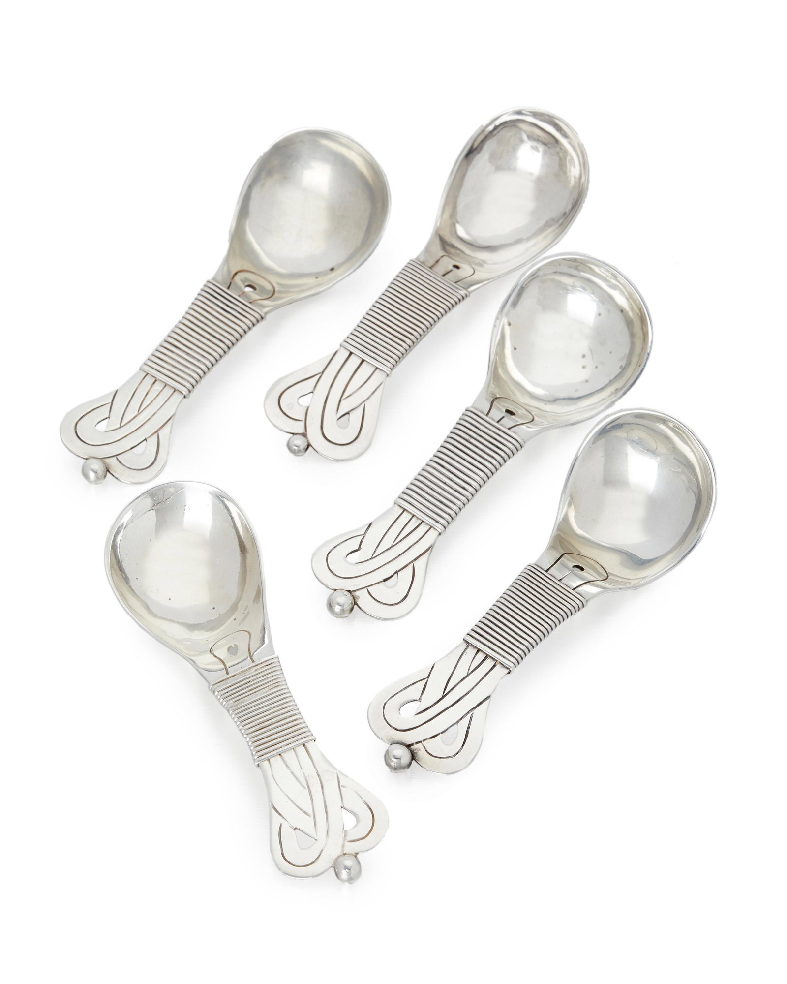 Five William Spratling sterling silver sugar spoons