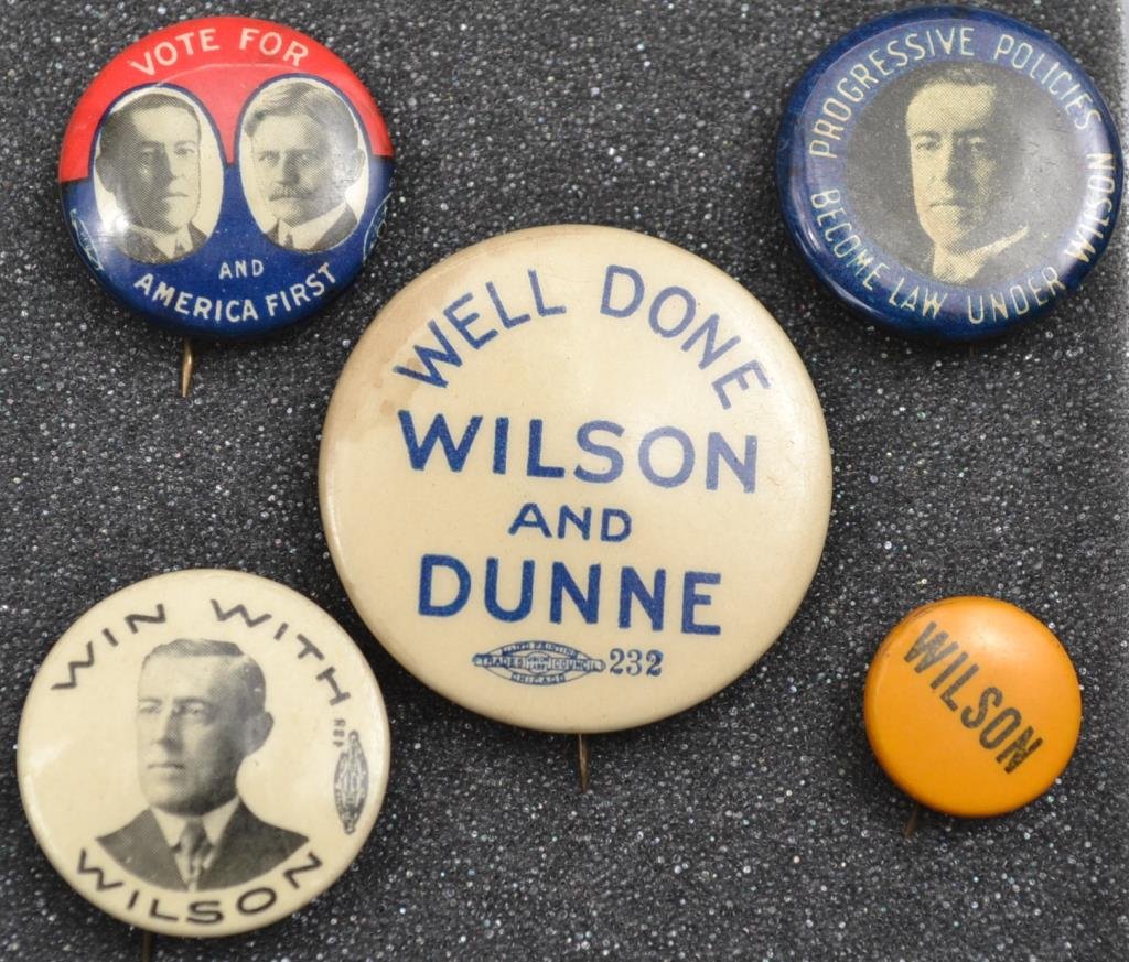 Five Wilson Campaign Buttons From 1912-1916