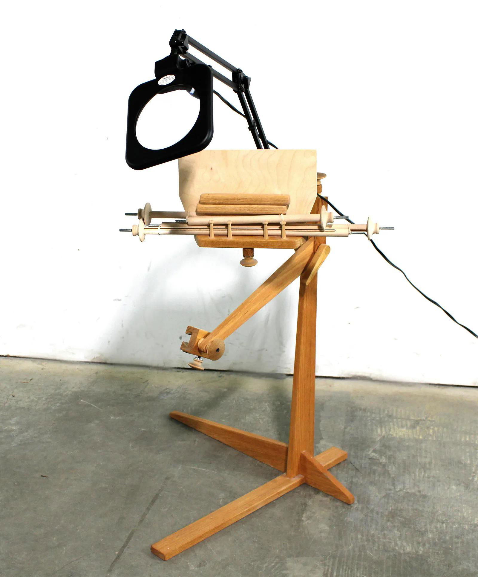 SoldFloor Model Cross Stitch Holder with Frames and Sewing BoxFloor Model Cross Stitch Holder with 10" and 18" Frames and Sewing Box. Includes lighted magnifying glass, pattern and thread holder plus frame holder. This item requires third-party shipping or pickuSee Sold Price