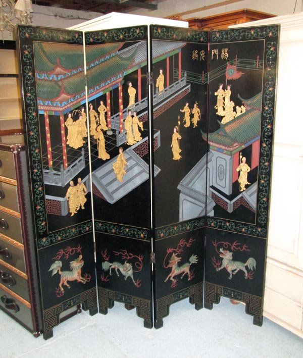 FLOOR STANDING SCREEN, Chinese, four fold, black