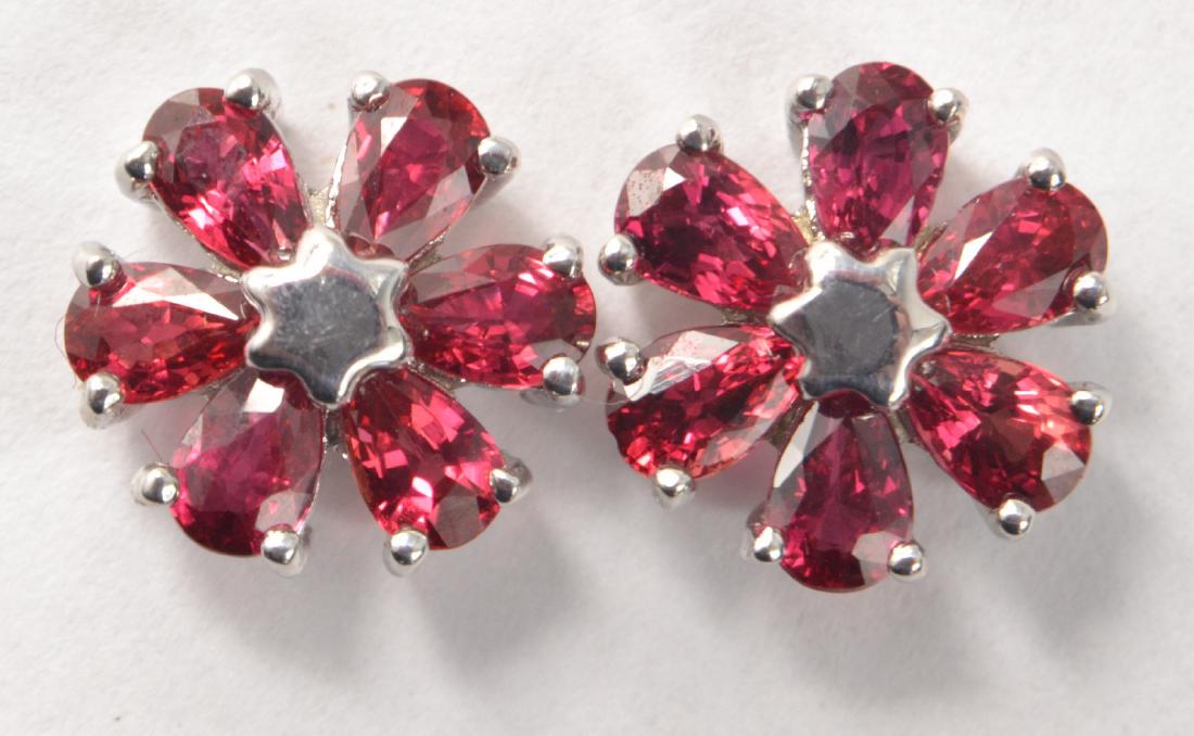 Floral 9k white gold ruby stud earrings