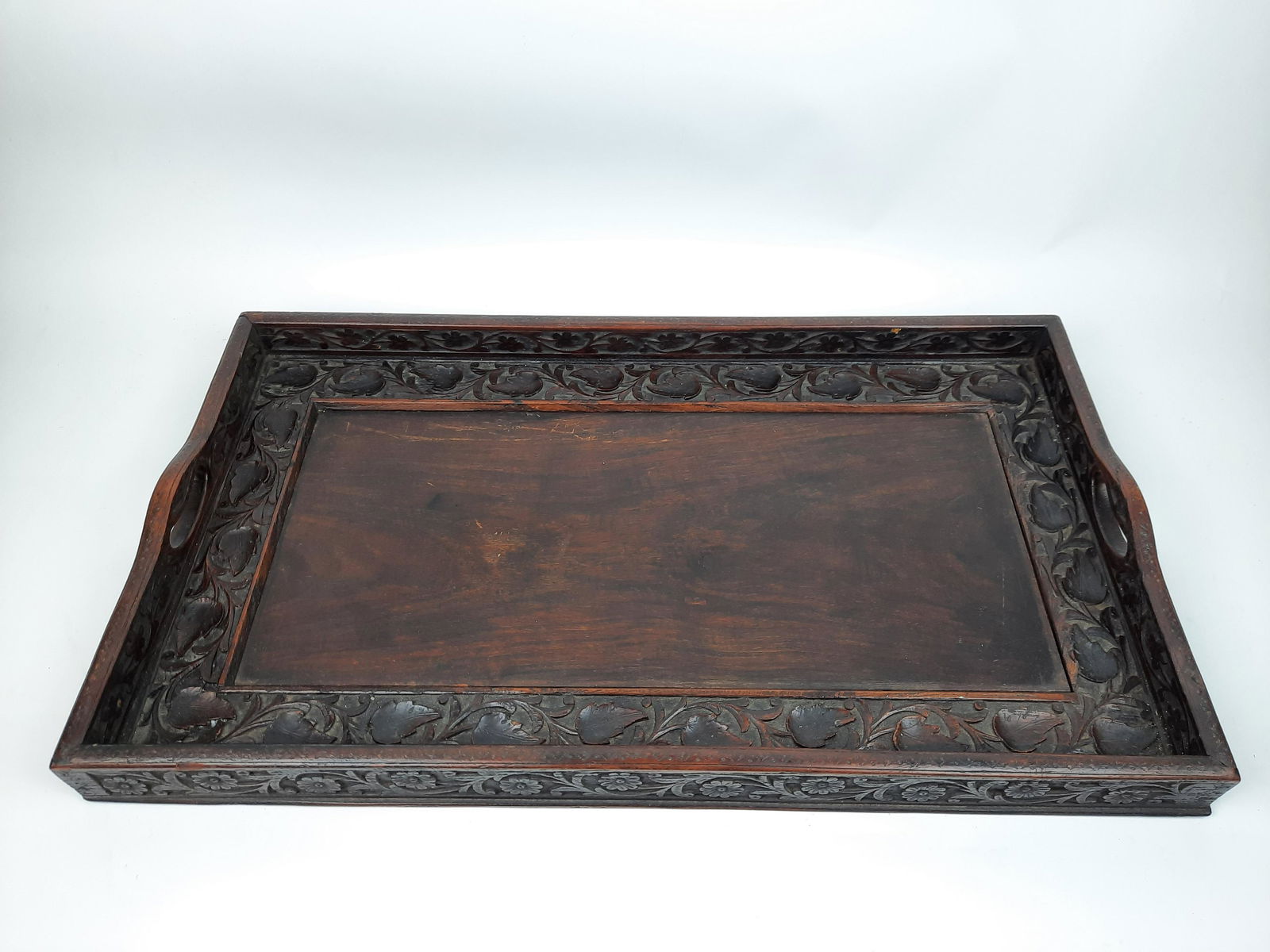 An antique inlaid wood serving tray with silver-decorated mountings and two handlesOstantix Auctions4.4(13)€1603 days Left