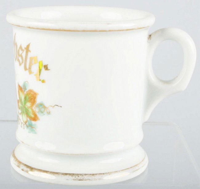 SoldAntique Barber Shop Shaving Mug Fruit Design.Antique Barber Shop Shaving Mug. 3 1/2" Fruit Design. Looks to be hand painted. Gold Trim. Occupational style mug. Good condition.See Sold Price