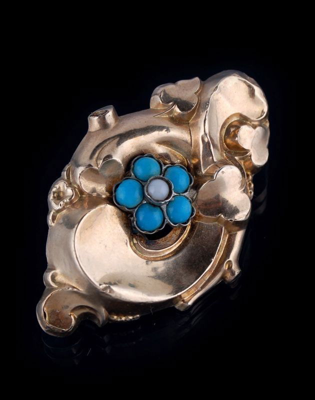 Florale Spätbiedermeier-Brosche. 2nd half 19th cen