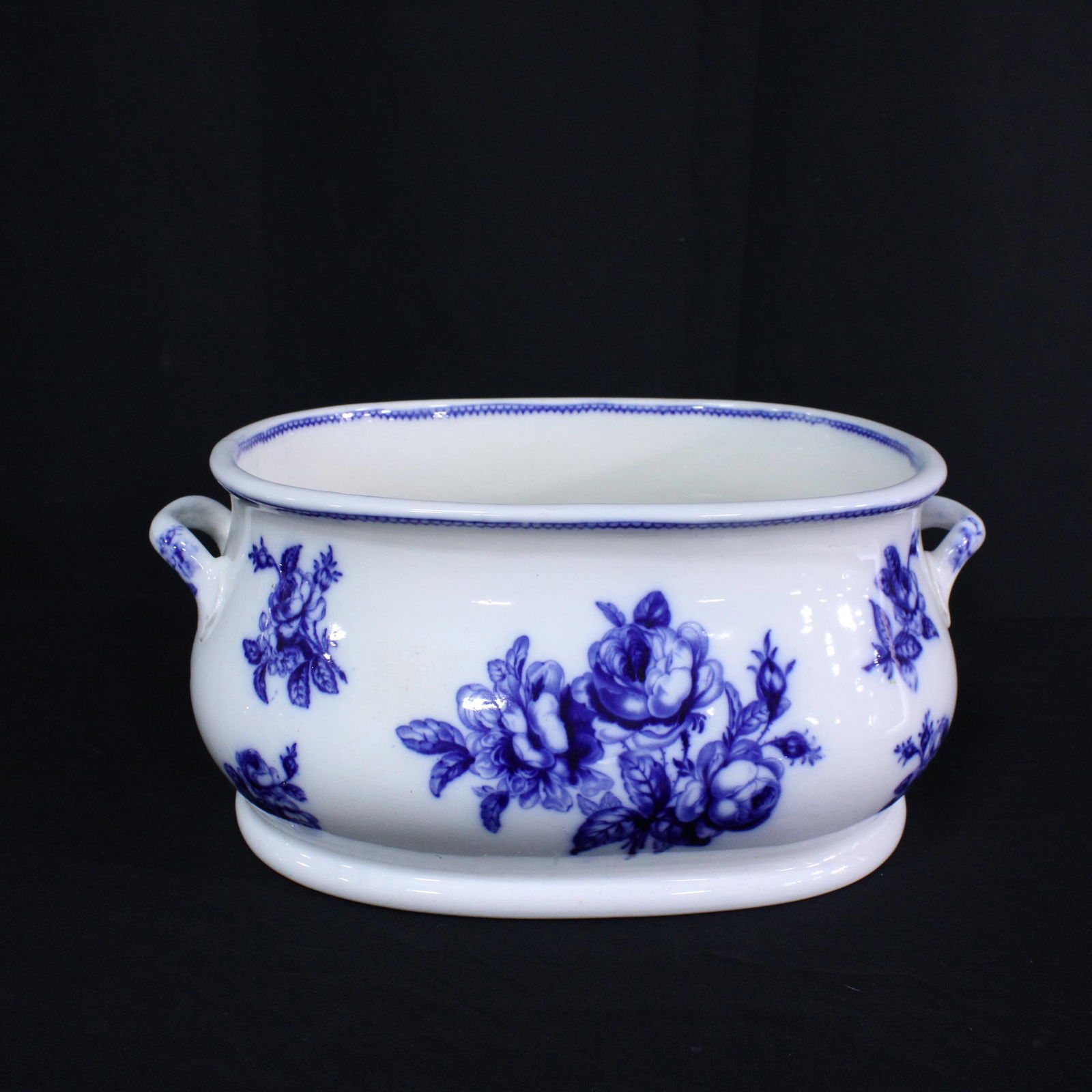 Flow Blue Footbath - Marked "Roses"