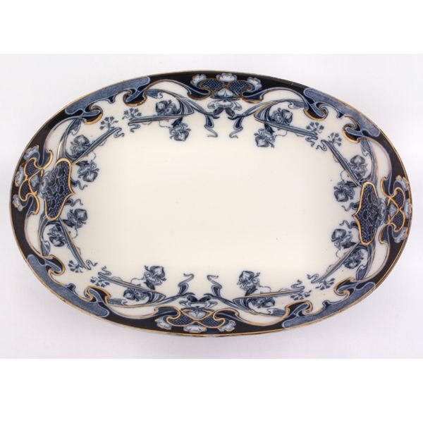 Flow blue platter, 16 1/2" x 12", Iris pattern, Roy