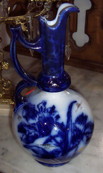 Flow Blue unique handle pitcher