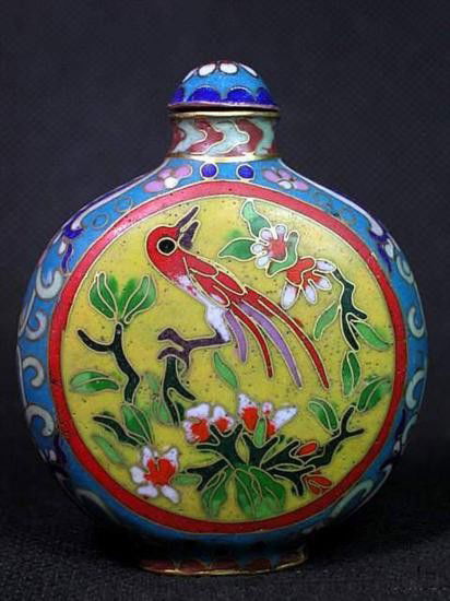 Flower & Bird Pattern Cloisonne Snuff Bottle