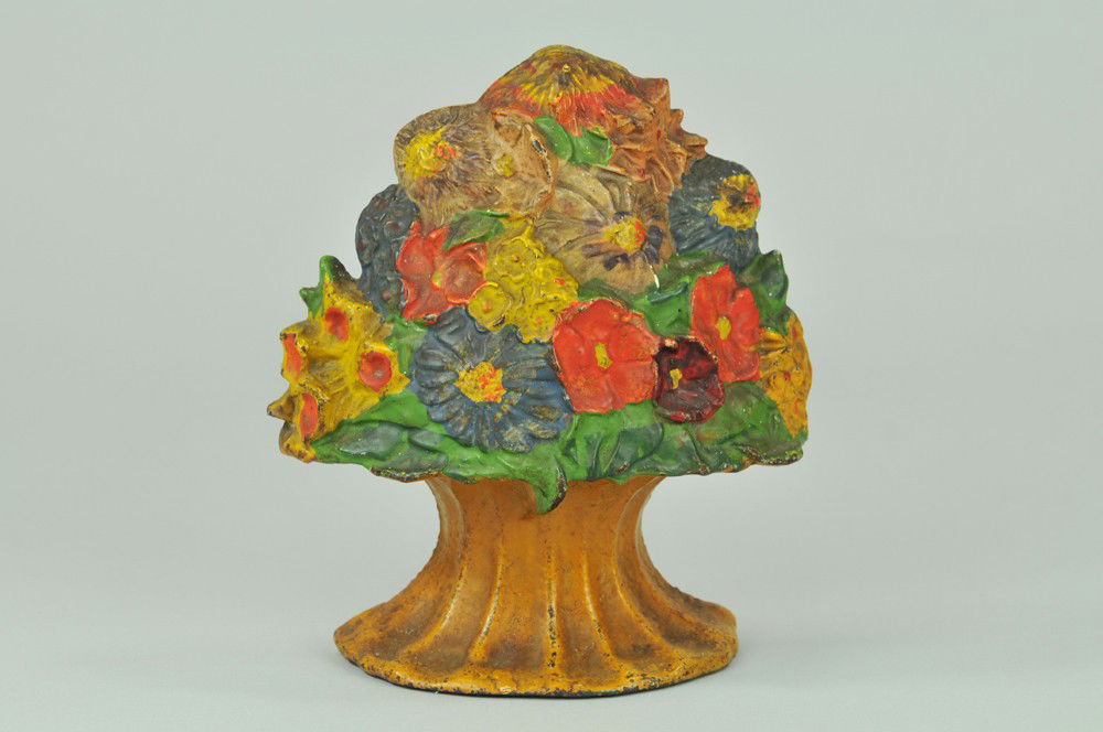 SoldCast Iron Doorstop Bouquet Flowers in Vase 10 in. height, Original Paint FinishCast Iron Doorstop Bouquet Flowers in Vase 10 in. height, Original Paint Finish. size: 10 x 6 x 2.25See Sold Price