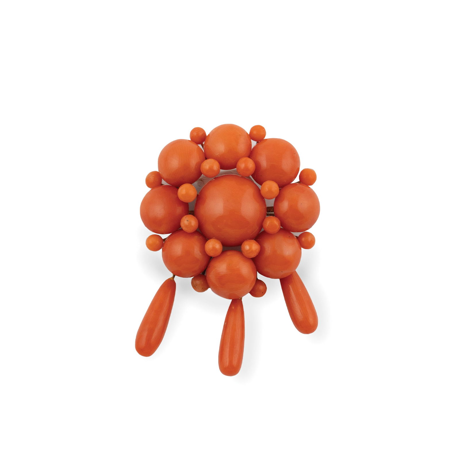 Flower brooch with coral cabochons