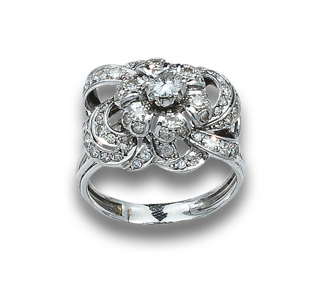 FLOWER RING, 60'S, DIAMONDS AND PLATINUM