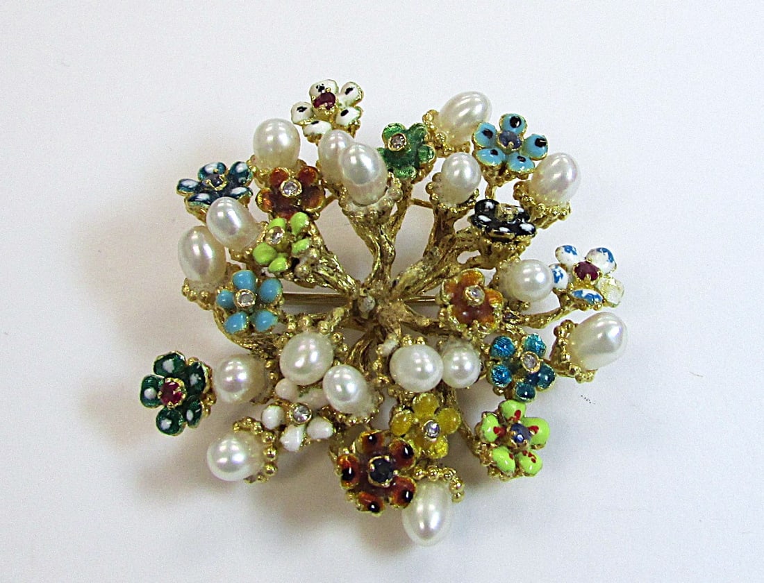 Vintage Diamond Two-Tone Flower Brooch Pin 18K Yellow Gold, 3.50 CTW, 35.2 Grams18KTGP Floral Brooch with Inlaid White Pearl Accents with Satin-Matte Gold PetalsMar 10, 202618KTGP Floral Brooch with Inlaid White Pearl Accents with Satin-Matte Gold PetalsMar 17, 202618KTGP Floral Brooch with Inlaid White Pearl Accents with Satin-Matte Gold Petals7 days LeftSatin-Matte Gold Floral Brooch with Inlaid White Pearl AccentsMar 10, 2026Gold MIKIMOTO Pearl Jade stone Brooch K14 Yellow4 days LeftVINTAGE SAPPHIRE EMERALD DIAMOND FLOWER BROOCH3 days LeftSatin-Matte Gold Floral Brooch with Inlaid White Pearl Accents7 days Left18KTGP Floral Brooch with Inlaid White Pearl Accents with Satin-Matte Gold PetalsMar 05, 2026ANTIQUE VICTORIAN STARBURST SEED PEARL DIAMOND BROOCH/PENDANTFeb 28, 202614K YELLOW GOLD BROOCH/PENDANT WITH ENAMEL, DIAMOND, PEARLS 18 GRAMS4 days LeftGolden Leafy Vines and Pearls Elegance Brooch7 days LeftVINTAGE BLUE GREEN ENAMEL DIAMOND FLOWER BROOCHMar 07, 2026Platinum 18K Yellow Gold Diamond Floral Brooch 198 Diamonds 17.25 CtFeb 28, 2026Designer Ming's Jade and Pearl Brooch Pin in 14k Yellow GoldJul 13, 2025VINTAGE BLUE GREEN ENAMEL DIAMOND FLOWER BROOCH3 days Left