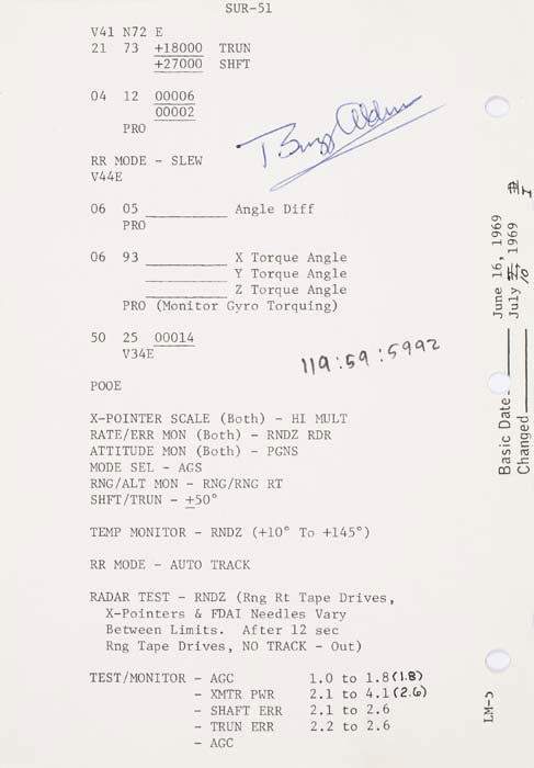 FLOWN Apollo 11 LM Lunar Surface Checklist. A