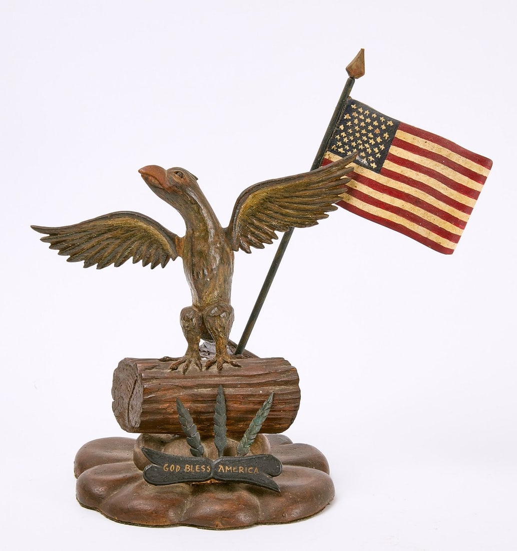Folk Art Carved Eagle with Flag