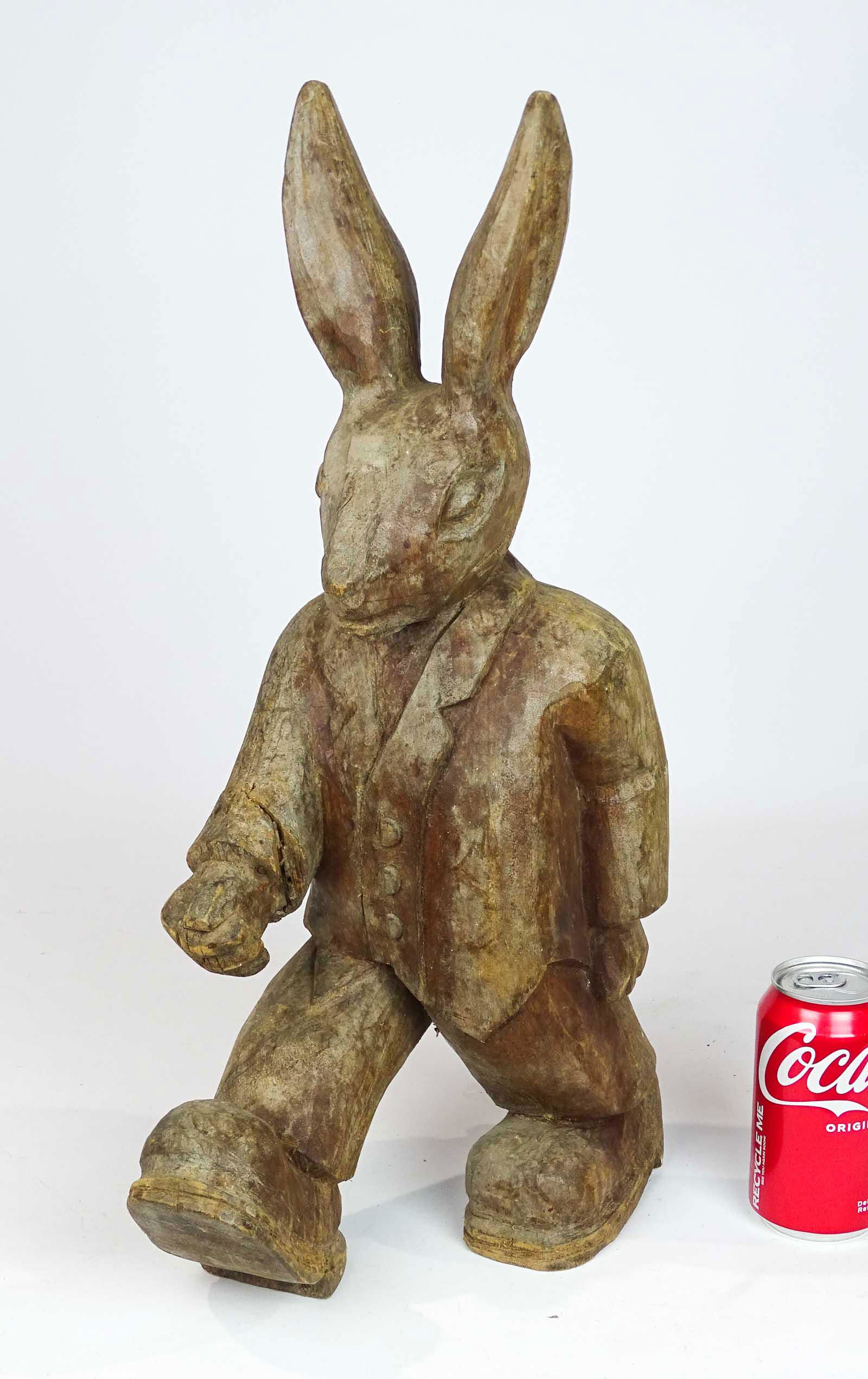 SoldCARVED FOLK ART RABBIT. HEIGHT 12 1/2"; LENGTH 17"CARVED FOLK ART RABBIT. HEIGHT 12 1/2"; LENGTH 17"See Sold Price