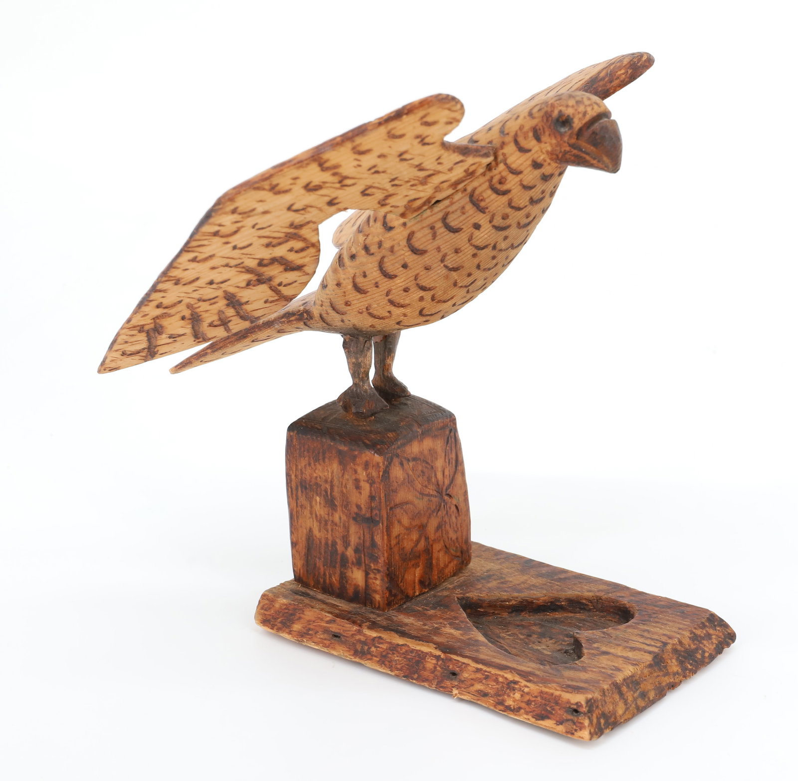 FOLK ART PYROGRAPHY EAGLE ON PERCH