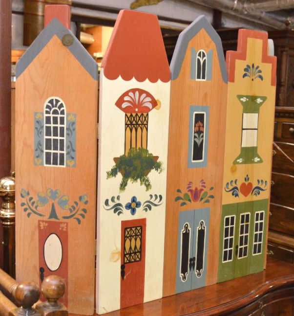 Folk Painted Fireplace Screen