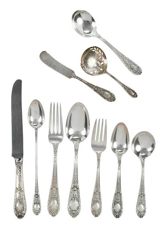 25 PCS. STERLING SILVER FLATWARE5 days LeftPrelude International Sterling Flatware, 65 piecesMar 26, 2026Tiffany Pattern Sterling Flatware, 118 PiecesMar 26, 2026Reed & Barton Francis I Sterling Flatware, 44 PiecesMar 26, 2026Gorham Gadroon Sterling Flatware, 87 PiecesMar 26, 2026(86pc) Towle Sterling Flatware SetMar 24, 2026Kirk Repousse Sterling Flatware, 60 PiecesMar 26, 2026Towle Royal Windsor Sterling Flatware, 85 PiecesMar 26, 2026(87pc) International Prelude Sterling Silver Flatware SetMar 24, 2026Reed Barton Eighteenth Century Sterling Flatware, 60 PiecesMar 26, 2026(72pcs) Reed & Barton Francis I Sterling Flatware SetMar 24, 2026(86 pc) Gorham King Edward Sterling Flatware SetMar 24, 2026Alvin Chateau Rose Sterling Silver Flatware ServiceMar 24, 2026An American Silver Flatware Service5 hrs Left(54 pc) Wallace Rose Point Sterling Silver Flatware SetMar 24, 202625 pcs. Towle "Old Master" Sterling Flatware3 days Left