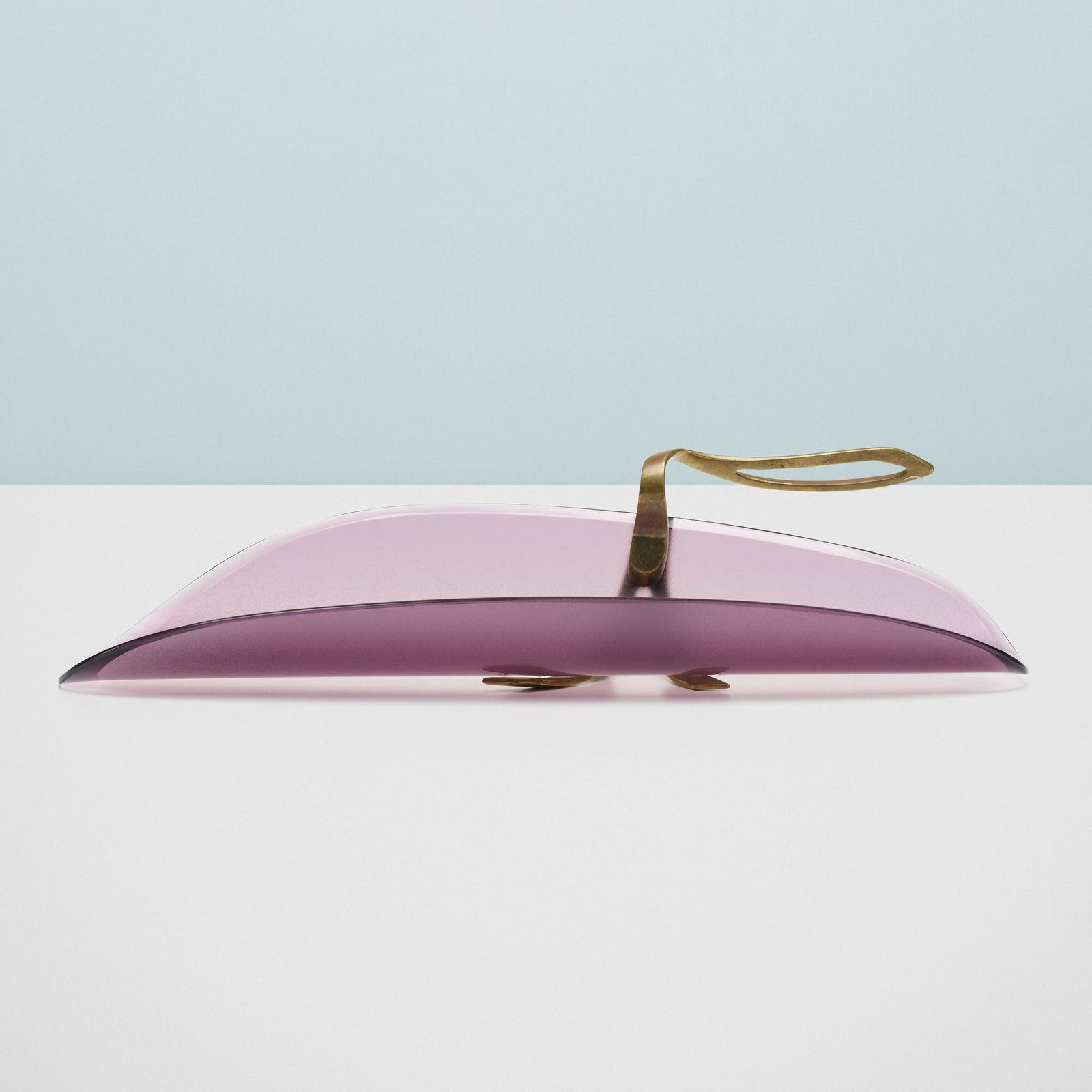 SoldFontana Arte, Covered DishFONTANA ARTECovered dish, 1950sColored glass, white metal, brass. Manufactured by Fontana Arte, Italy. 4.75" H x 8.5" DiameterSee Sold Price