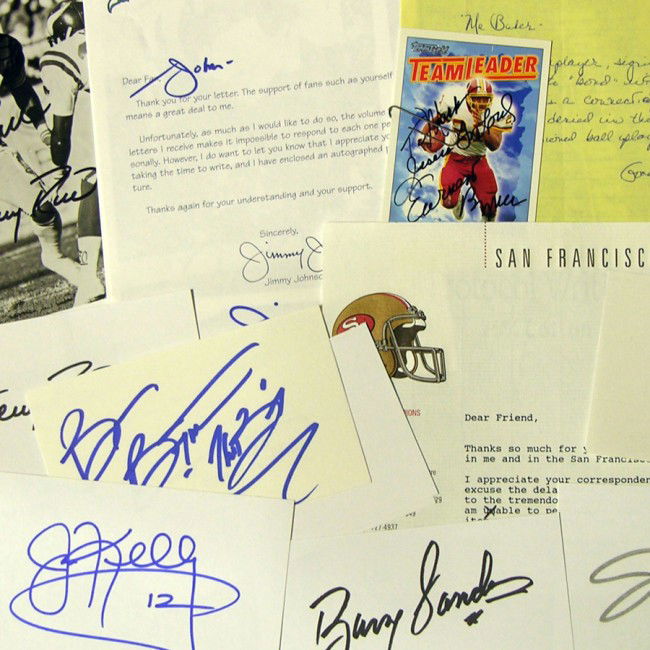 LOT OF 6 AUTOGRAPHED BASEBALLSFeb 15, 2026Lot of 4 Football Autograph Cards. All Different, See Pictures for CardsFeb 17, 2026Baseball Group Lot: Joe DiMaggio, Mickey Mantle, Nolan Ryan & More!Feb 18, 2026Twelve Letters to Amon G. Carter. Group lot compFeb 26, 2026Dealer's Lot of 49 Signatures of Miscellaneous Notables: NASA, British PMs, & Numerous EntertainersFeb 18, 2026Chicago Cubs Lot including Vintage Programs, some with Autographs (No COAs), Cards including5 days LeftCollectibles Lot incl Marvel Spider-Man Money Clip, Marvel Black Panther Tie Bar, Bears 1985 NFC Cha5 days Left9 CARD NFL FOOTBALL #’ED AUTOGRAPHED ROOKIE CARD LOTFeb 18, 2026Mixed Lot US Commemorative Stamps Mint Set Postal Service AlbumsFeb 23, 2026Lot of 4 1981 Topps Football Cards. Largent, Gastineau, Winslows, ClarkFeb 17, 2026220 - Collection of Early to Mid Mission Space Shuttle Era Event CoversFeb 14, 2026Large Grouping of Sports Posters19 hrs LeftPro Football HOF Signed 8x10 Card 18 Autographs PSA/DNA6 days LeftFRANK SINATRA LAWFORD MARTIN Plus 12 Signed Autograph Oceans 11 Cast JSA LOA5 days Left24 Assorted Sports Cards With Relics Or AutosFeb 12, 2026Collection of 1970s Football Greats Including Dallas Cowboys, Jerry Rhome, Dan Perkins, MerlinFeb 18, 2026