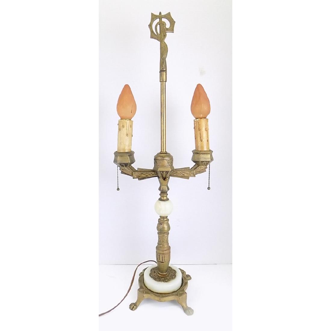 FOOTED BRASS TABLE LAMP