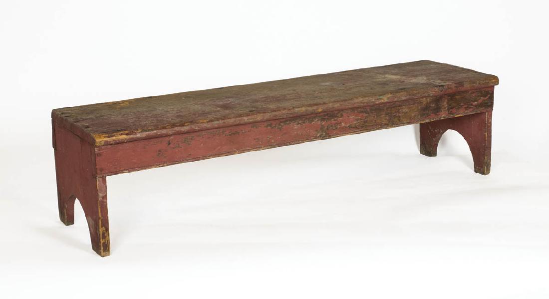 FOOTSTOOL, AND LOW BENCH Pine and cherry, original red