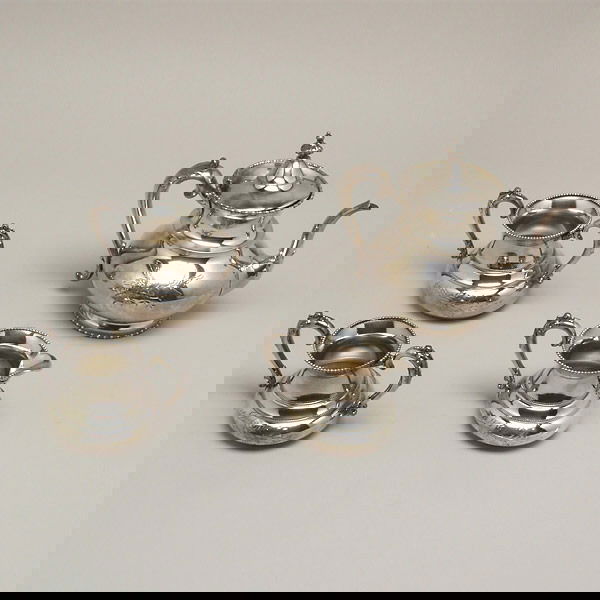 ENGLISH SILVER LUSTRE CERAMIC TEA AND COFFEE ARTICLES, LOT OF SIXMar 04, 2026William Hunter 1842 Sterling Teapot Set of Three6 days LeftSterling Silver Estate Tablewares2 days LeftA FOUR-PIECE SILVER 'BAMBOO' TEA AND COFFEE SERVICE, MARK OF ZEE WO, SHANGHAI, CIRCA 1870-1925Mar 11, 2026E.G. WEBSTER & SON SILVER-PLATED FIVE-PIECE COFFEE AND TEA SERVICEMar 04, 20266 Piece Sterling Silver Tea and Coffee Set4 days LeftBailey, Banks & Biddle Queen Anne Sterling Tea Set5 days Left3 pcs Vintage Silver Plated Tea Pots, incl. 1x W.W.H. & Co. & 1x Homan. Very Good Condition.Four Piece Chinese Export Silver Tea and Coffee Set, Marked 'C.J'Mar 01, 2026ANTIQUE SILVER-PLATE CHILDREN'S TEA SET IN ORIGINAL FITTED BOXMar 05, 20263 pcs Vintage Rochester Silver Plated Tea Pots w/ Floral Details. Good Condition. See pics.4 Piece Silver Plate Tea SetMar 04, 2026Six-Piece Gorham Sterling Tea & Coffee Service4 days Left3 pcs Antique Silver Plated Tea Pots, incl. Rogers & Bro, Pairpoint & Superior. Very Good Cond.Garret Forbes American Coin Silver 4-Piece Tea Set2 days LeftEarly 19th Century Sheffield Plate Tea and Coffee Service, American- 4 Pieces