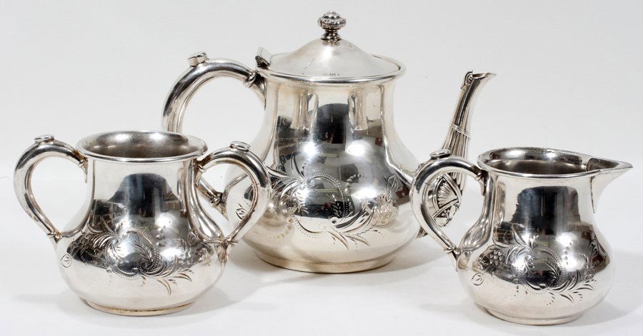 (Lot of) 3 Sterling Silver Service Items, 2 by Emil Hermann3 days LeftWilliam Hunter 1842 Sterling Teapot Set of ThreeFeb 28, 2026A FOUR-PIECE SILVER 'BAMBOO' TEA AND COFFEE SERVICE, MARK OF ZEE WO, SHANGHAI, CIRCA 1870-1925Mar 11, 2026Four Piece Chinese Export Silver Tea and Coffee Set, Marked 'C.J'Mar 01, 2026American Aesthetic Silver-Plate Four Piece Coffee Service, late 19th c., Coffee- H.- 12 1/4 in., W.-Feb 27, 20263 pcs Antique Silver Plated Tea Pots w/ Ornate Motifs, incl. Meriden Co., Roger's & Reed & Barton.Bailey, Banks & Biddle Queen Anne Sterling Tea SetFeb 27, 2026A Four-piece Silver Tea and Coffee Service, possibly Peruvian2 days LeftThomas Warner (Baltimore) American Silver Three-Piece Tea Service, c. 1810-1830Mar 08, 2026Garret Forbes American Coin Silver 4-Piece Tea Set5 days LeftGerman Hand Chased Angkor .900 Silver Tea Service Set7 days Left3 pcs Vintage Silver Plated Tea Pots, incl. 1x W.W.H. & Co. & 1x Homan. Very Good Condition.Three silver articlesMar 03, 2026International Prelude Four-Piece Sterling Silver .925 Tea SetF.B. Rogers Five-Piece Sterling Silver .925 Tea SetDerby Silver Co. Silver Plate Tea Service, 4 Pcs.Mar 12, 2026