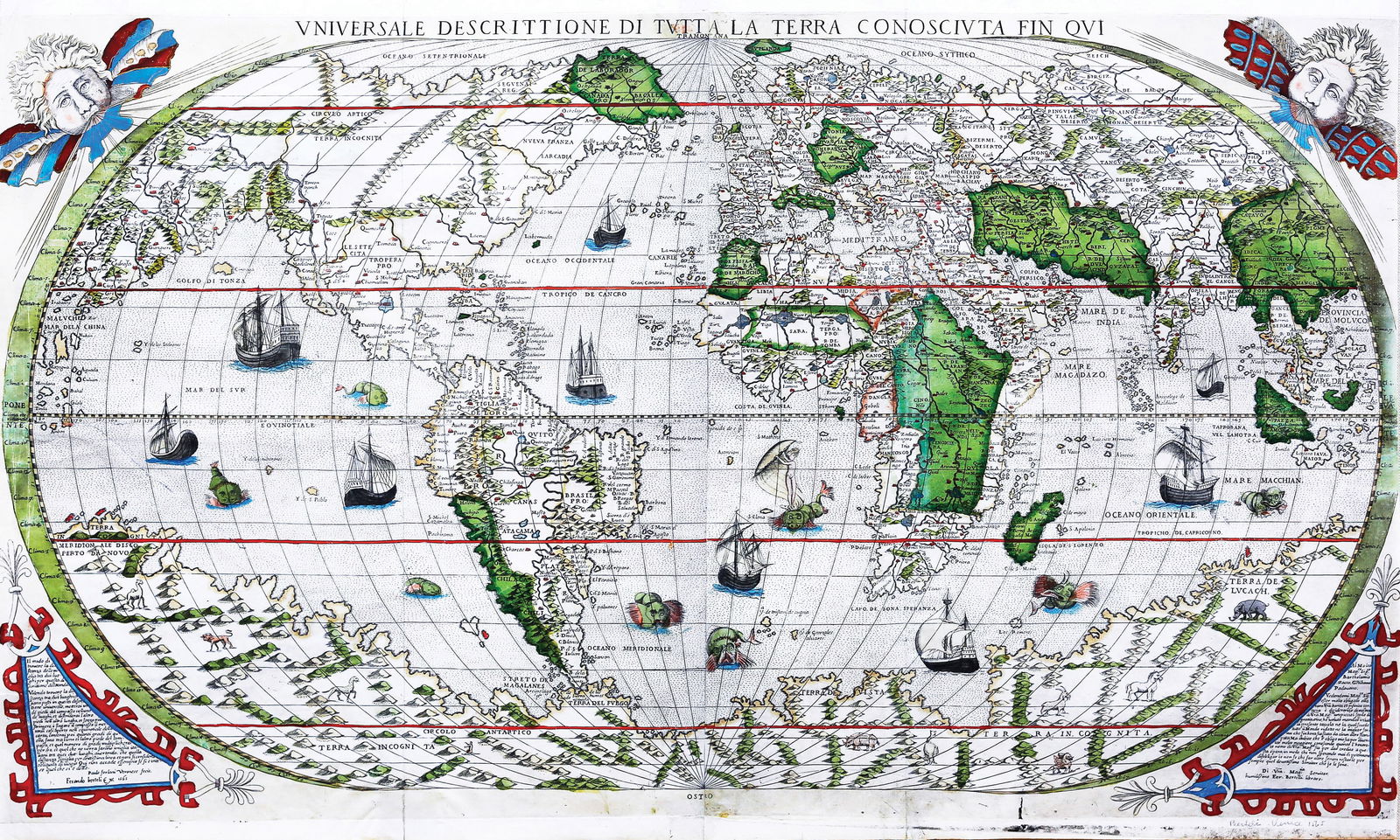 SoldOrtelius' 1570 world mapHeading: Author: Ortelius, Abraham Title: Typus Orbis Terrarum Place Published: Antwerp Publisher: Date Published: 1570-[1584?] Description: Copper-engraved map, hand-colorSee Sold Price