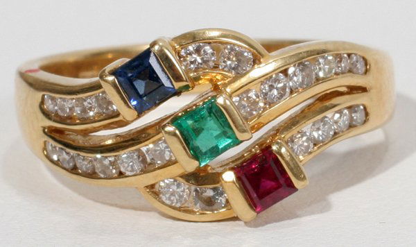 Women's ring. 585 yellow gold with 3 coloured stones and 2 very small diamonds.Auktionshaus Schreiber4.3(13)€3904 days Left
