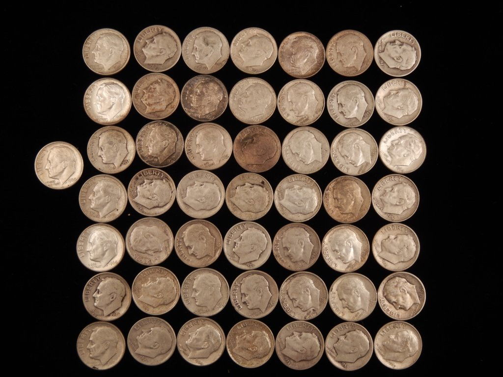 Forty-six silver Roosevelt dimes