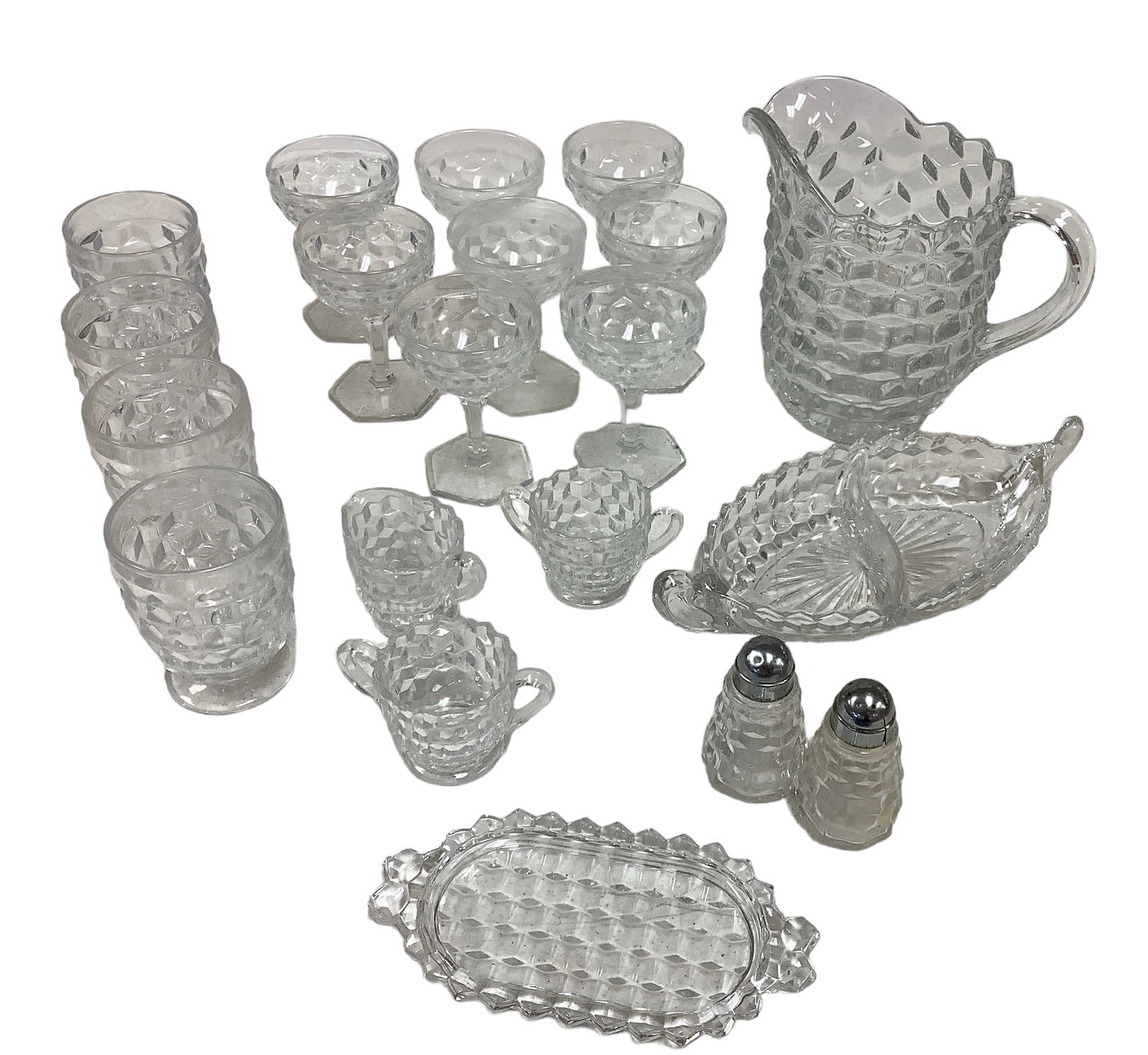 Waterford Crystal Stemware & Tableware 11pc LOT7 days LeftHawkes Crystal Gravic Fruits Glasses Mixed 15pcs7 days Left9pc Bayel Bacchus and Bacchante Frosted Nude Stemware.Mar 28, 2026A Collection of 4 EAPG Pressed Glass Tableware Articles5 days Left4pc American Cut GlassMar 31, 2026Waterford Crystal Stemware and Tableware18 hrs LeftMcKee "Rock Crystal Clear" Pattern Depression Glass Stemware and Serveware 1915 - 1944, 80 PCS20 hrs LeftAn Assortment of Cut-Crystal and Etched Glass Barware and Stemware6 days LeftA mixed group of sterling silverA Collection of Waterford, Cashs, and Assorted Cut Crystal Vases6 days Left(7pc) Bohemian Cut Crystal Group5 days LeftCut & Etched Glass/Crystal Perfume and Decanters (6)Mar 28, 2026An assembled five piece group of American sterling silver tableware, various makers, 20th centuryApr 01, 2026A Collection of 5 EAPG Pressed Glass Cups and Pitcher5 days LeftFOUR CRYSTAL TABLE ARTICLES INCL. STERLING MOUNTED6 days LeftSteuben bowls, glasses etc.19 hrs Left