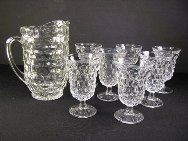 FOSTORIA AMERICAN PATTERN PITCHER & ICE TEA GLASSES